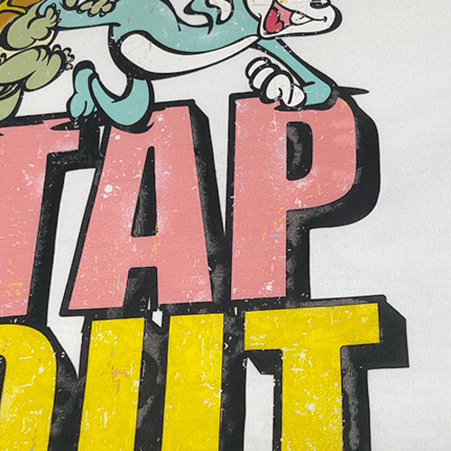 ※デザインをレトロな雰囲気にするため、プリント手法を、かすれや版ずれを生じさせたり、塗りが荒削りなデザインが特徴のデザインとなっております。
