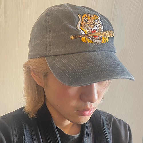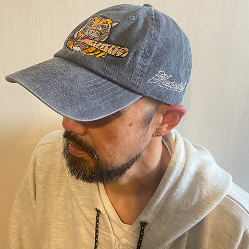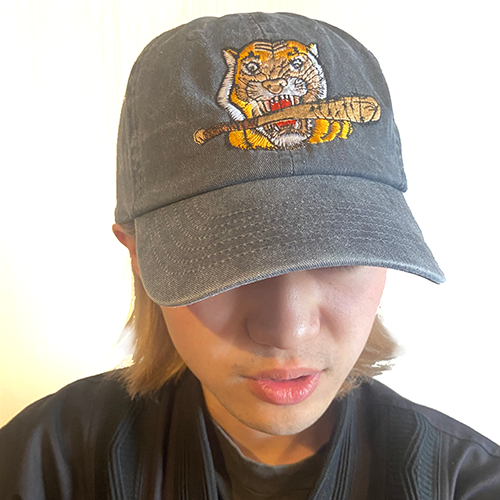 有刺鉄線のHAOMINGのロゴ × 虎の刺繍。遊び心のあるアイテムです!ヴィンテージ感のあるユニセックスな定番のキャップ。