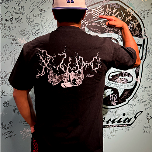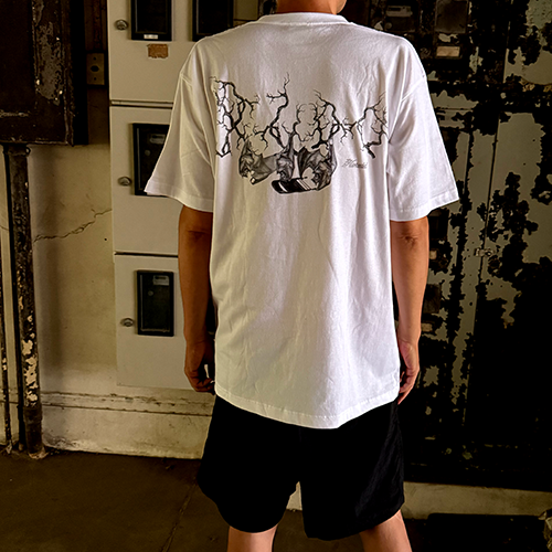 枝てかたどった"RUDO"の文字にぶら下がるコウモリがCOOL。しっかりした厚みのロンT。