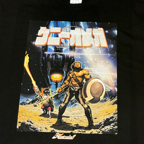 相棒のドビーと"スペース・ヒーロ"ケニーオメガのイラストは、ケニーさんのキッズ時代 90'sのアニメや、ゲームのジャケットの世界観からインスパイアを受けたイラストです。カタカナロゴ、英語ロゴの2種類は宇宙船、ロケットと異なる背景になっています。