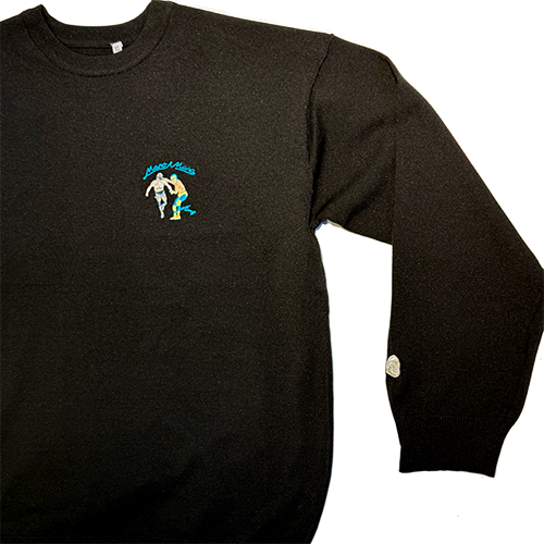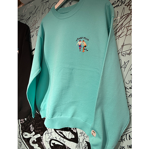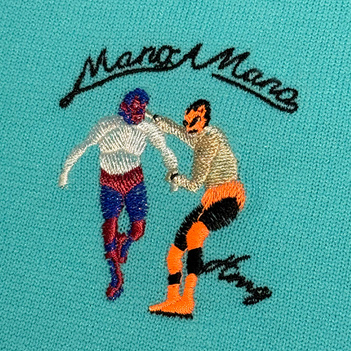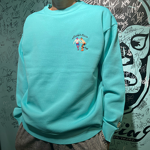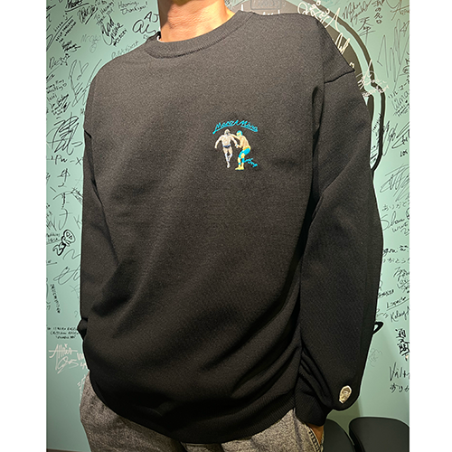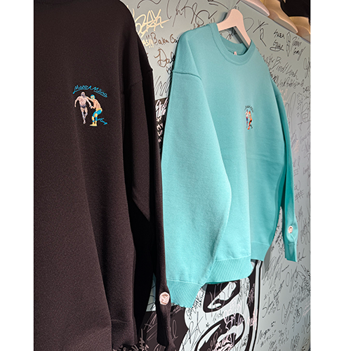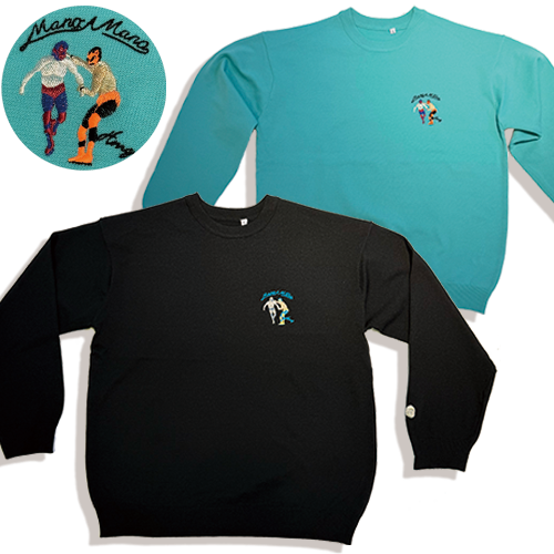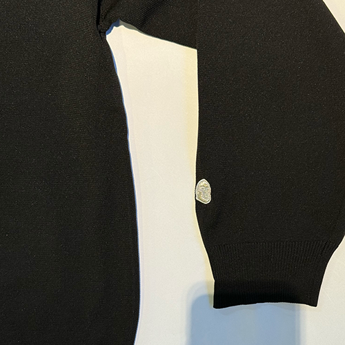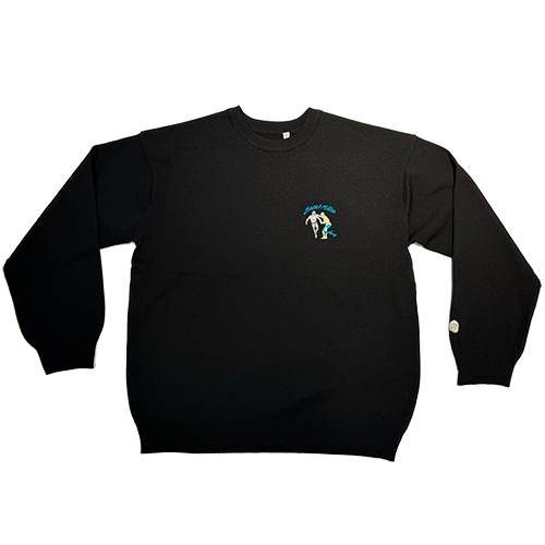 シンプルな刺繍ワンポイントが光る、スウェットライクなニット。袖口にも ICON MASK刺繍があり。ポリエステル100%の天竺編みニット素材なので、程よいハリと厚みがあり、綺麗めな印象で、カジュアルでも大人らしくまとまります。オールシーズン着ることができるニット。