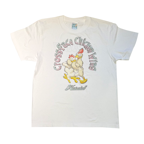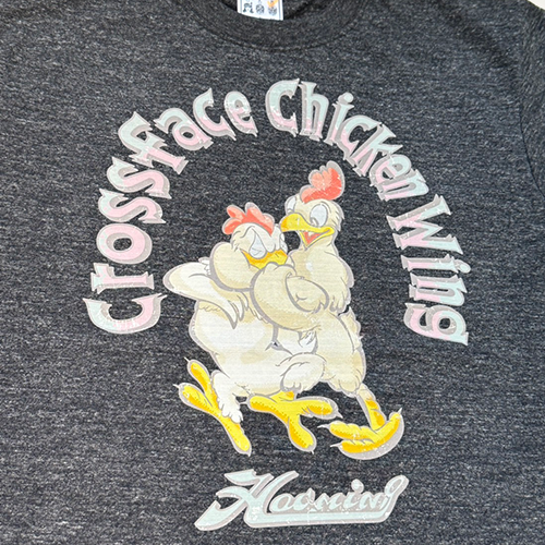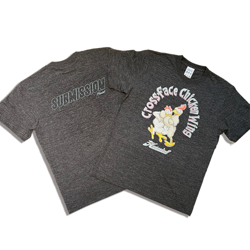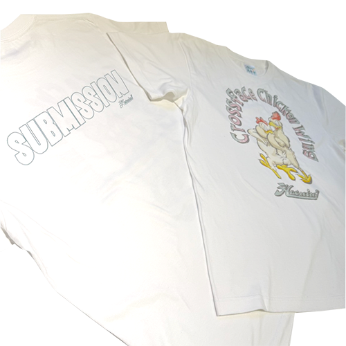 関節技、チキンウィング・フェイスロックを古着のようなダメージ風のイラストで表現。