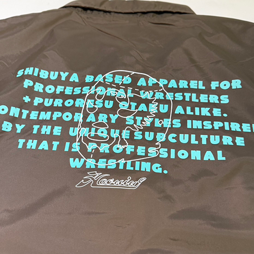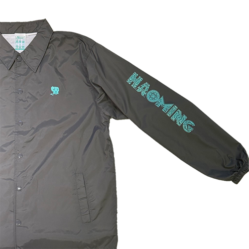 HAOMING SHOP Shibuya Tokyoの、イメージをクリス・ブルックス選手に以前英語にしてもらい、それを シンプルなデザインのコーチジャケットにコーチジャケットに。