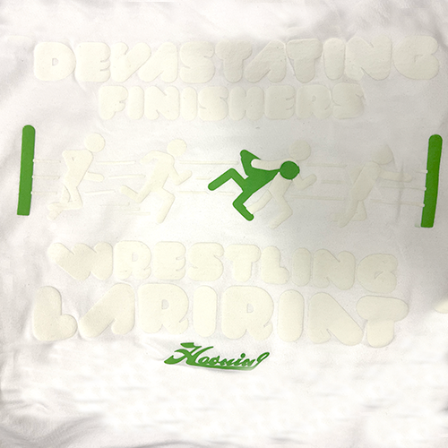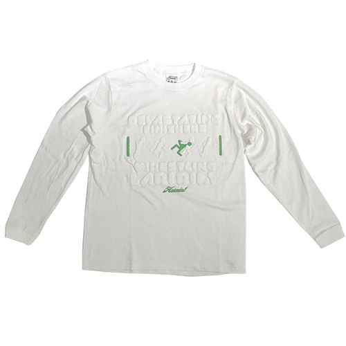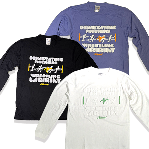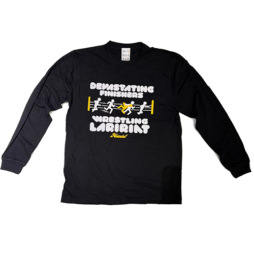 プロレスの必殺技ラリアットを図解にした、立体的なプリントによるポップでスポーティな定番スタイルのリブ付きロンT。 COTTON100%